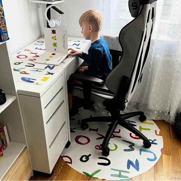 SECURE PAYMENTS Desk mats are also useful for anyone working in a home office setting. The more time you spend in front of a computer, the more of your daily tasks you perform at your desk. This means that the desk's surface is more likely to be ruined due to mechanical damage than usual. Investing in an additional protective mat for your desk is a good idea. The material that the mat is {made of} ensures a 100% protection of the desktop against scratches and stains. Desk pad colorful letters can also successfully serve as a laptop pad.
